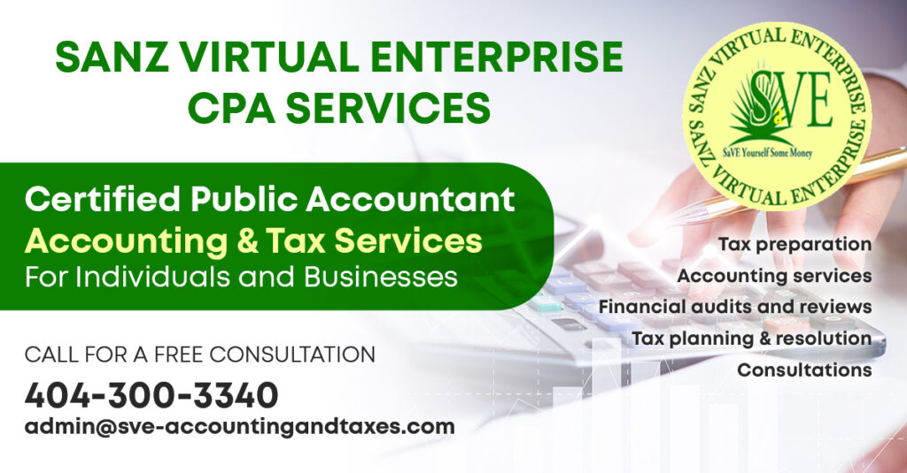 Get the latest updates in CPA Accounting and Tax Preparation Services with Sanz Virtual Enterprise, LLC. From tax savings tips, to proper bookkeeping and accounting reporting of your financial transactions, to Who we are and Where We Are Located online and physical location wise.